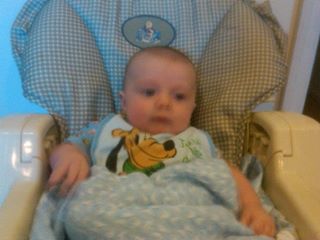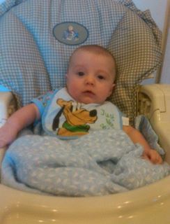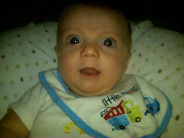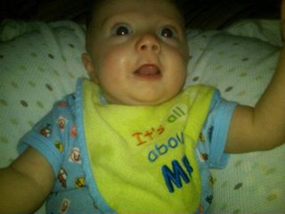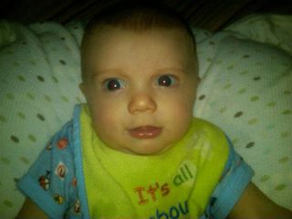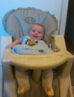 You had your four month checkup today and your weight was 13.5 lbs and 23.25 inches long. Doc said you looked great, and you are starting to come out of the 5th and 10th percentiles. Your weight was in the 30th percentile, and I am not sure about your length.
