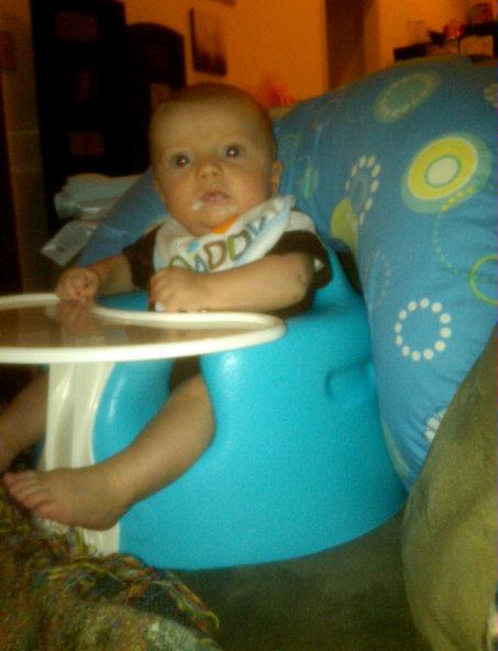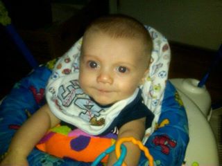 You turned 12 weeks old today. 8 more days until your hernia surgery. Your favorite tv show is The Wiggles and you are starting to do alright in your “Lady Bug” activity chair. We have to pad the back of the seat as you are still a bit small to fit in it safely by yourself. Here you are watching The Wiggles in that chair.