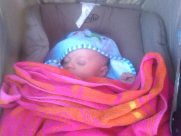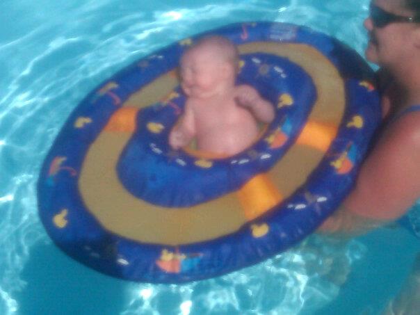 Today mommy took you up to the Yacht Haven marina to visit GiGi and swim in the pool there. She had a little float thing for you to sit in. I had to work, but she says you enjoyed it. Since this time, your enjoyment of the water has only increased. Here are a few pictures from today. The one of you sleeping is after swimming. You’ve had this tendency to keep your arms and hands raised up near your head while sleeping, and sometimes while awake. This will continue for a few years.